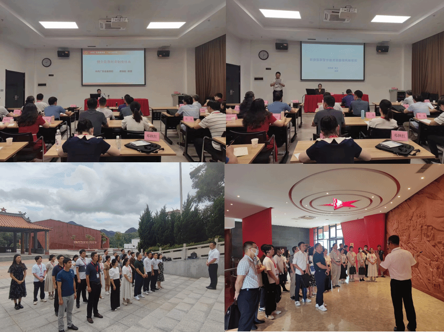 学习培训坚持课堂讲授与现场体验相结合,共开展4场现场教育,分别赴高潭党性教育基地、激石溪红色革命根据地、东江廉洁文化教育基地、东江纵队纪念馆进行现场教学,全体纪检干部深刻感悟了高潭先烈 “生也要红 死也要红” 的铿锵呐喊和英烈不怕牺 牲、英勇斗争精神,更加坚定纪检监察干部敢于斗争的决心。通过重温入党誓词、沉浸式体验,让纪检干部时刻牢记政治身份、坚定信仰信念、筑牢思想防线、弘扬知廉守廉倡廉,教育引导全体干部以清为美、以廉为荣,时刻绷紧“反腐弦”,把好“廉洁门”。